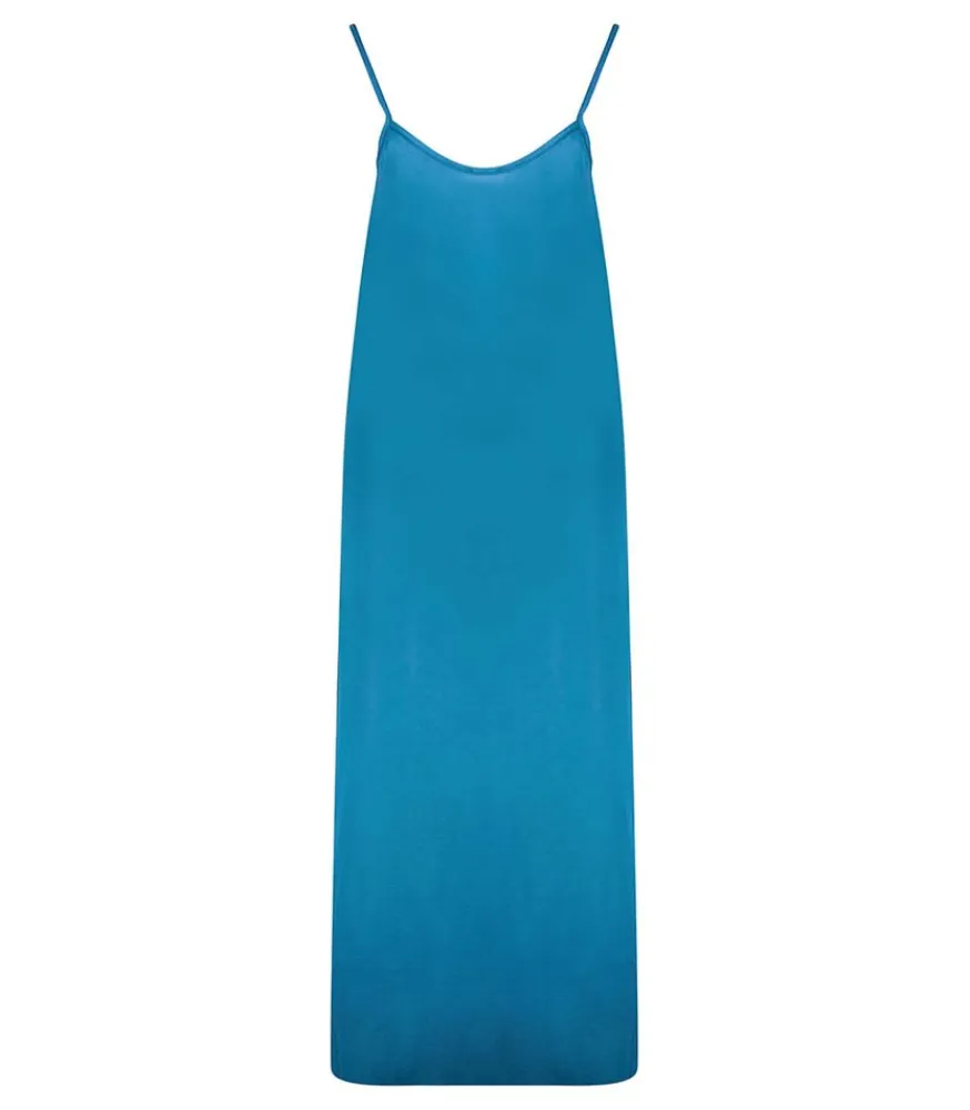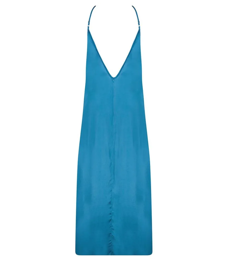 Robe Longue Rio Pétrole De La Marque Maison Saint Julien. Un Modèle Élégant Mettant En Valeur La Silhouette Avec Son Profond Coloris Et Son Tissu Fluide.