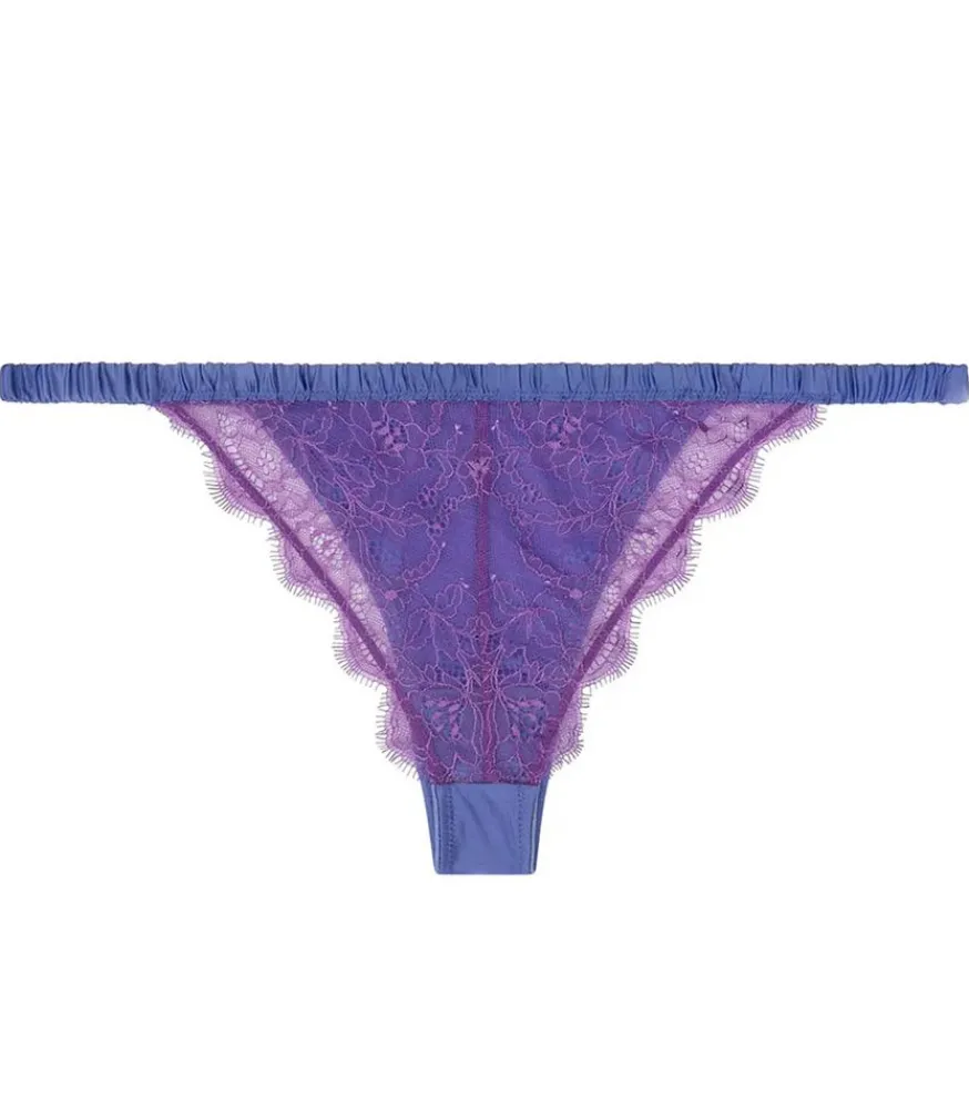 String Charlotte Purple De La Marque Love Stories, Une Culotte De Style Tanga De Couleur Violette En Satin Doux Et Extensible Avec Une Brillance Moirée. L’Arrière Est Réalisé En Dentelle Délicate Et Florale.