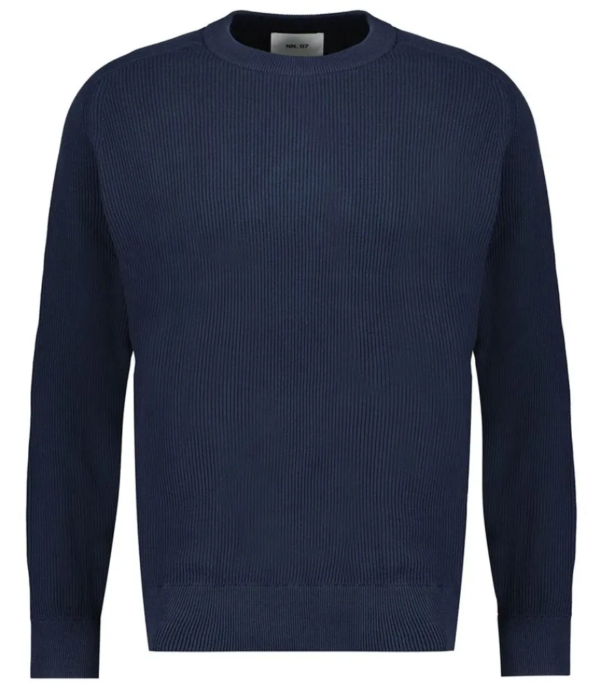 Pull Kevin Navy Blue De La Marque Nn07. Laissez-Vous Séduire Par Ce Pull Côtelé Réalisé À Partir De Fil De Coton Biologique. Bien Plus Qu’Un Simple Pull, Ce Dernier Est Respectueux De La Planète Et Prendra Soin De Votre Peau. Il Est Doté De Bord-Côte Aux Extrémités.
