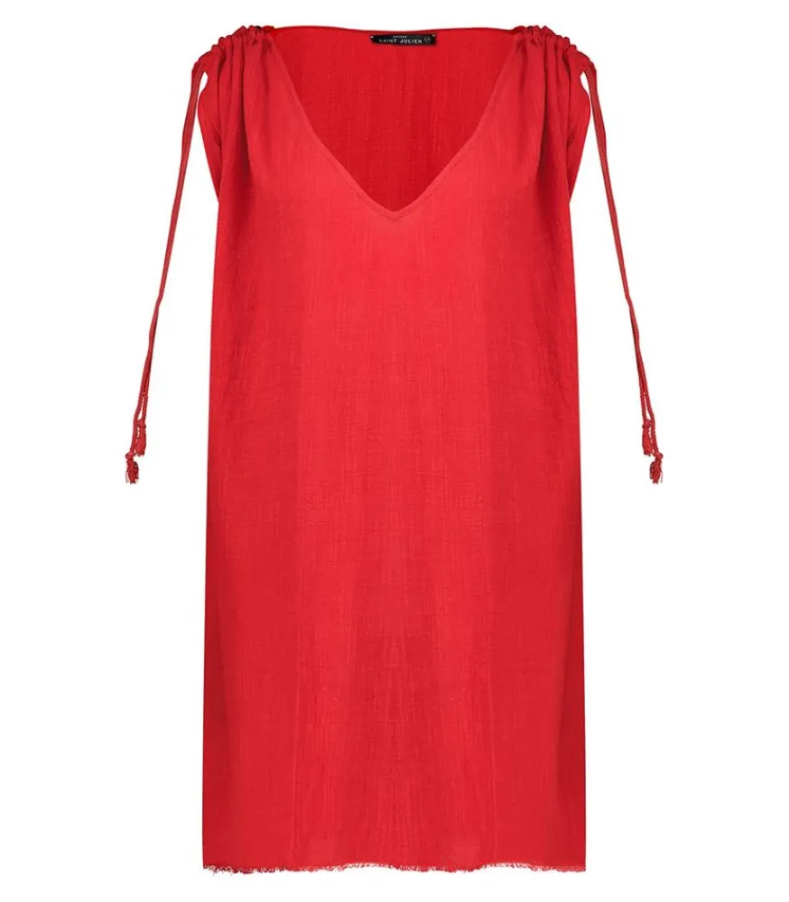 Robe Courte Alexandrie De La Marque Maison Saint Julien, Une Robe Kaftan D’Été Légère Et Aérienne, Conçue En Mousseline De Coton Et Qui Offre Une Allure Bohème. Coloris Fire Édité En Exclusivité Pour Jane De Boy, À La Teinte Vivifiante Qui Flatte Les Peaux Hâlées.