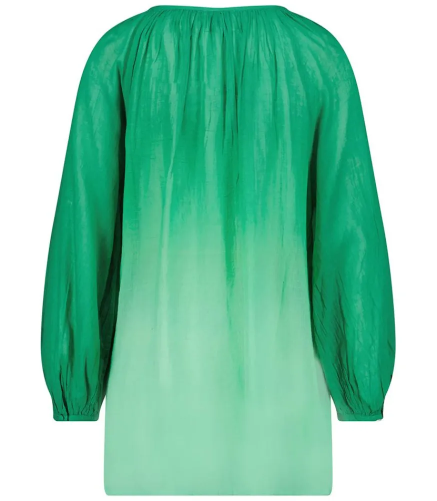La Blouse Bis Vert Offre Une Élégance Décontractée Avec Une Touche Bohème. Confectionnée Dans Un Tissu Léger Et Légèrement Transparent, Elle Présente Un Motif Tie & Dye Vert Qui Lui Confère Un Charme Naturel Et Rafraîchissant. Son Détail De Lacet Au Col Ajoute Une Note D’Originalité Et De Féminité À Cette Pièce. Parfaite Pour Les Journées Ensoleillées Ou Les Soirées Estivales, Cette Blouse Devient Un Indispensable De Votre Garde-Robe Pour Son Style Fluide Et Sophistiqué.