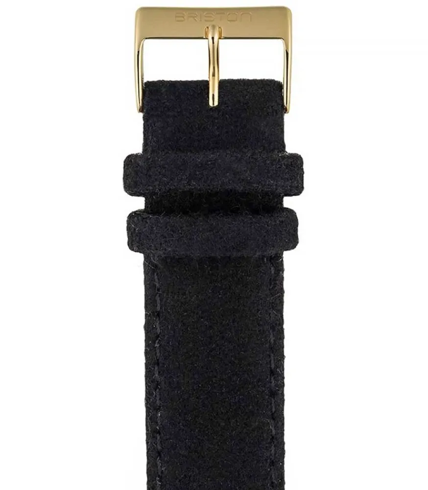 Misez Sur L’Élégance Avec Ce Bracelet De Montre Interchangeable Flanelle Noir/Or Jaune Du Créateur Français Briston. Compatible Avec Toutes Les Montres De La Marque, Ce Bracelet D’Une Grande Douceur Mesure 235 Mm De Long Pour 20 Mm De Large.