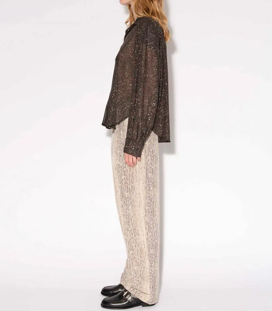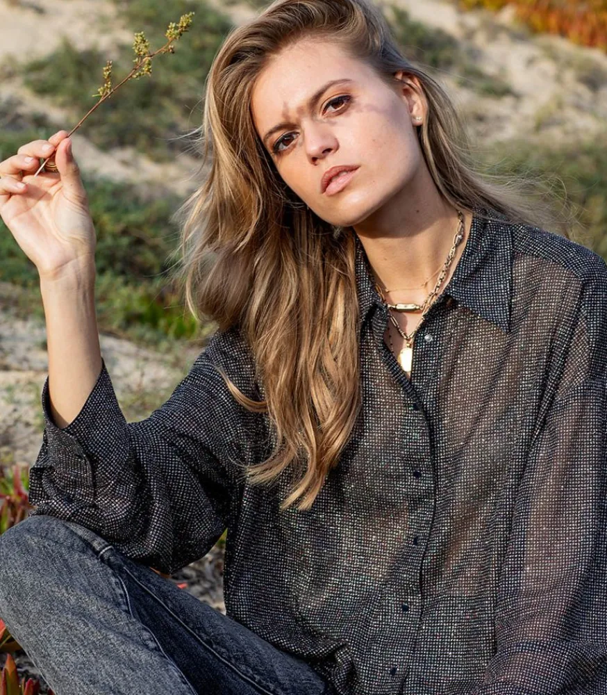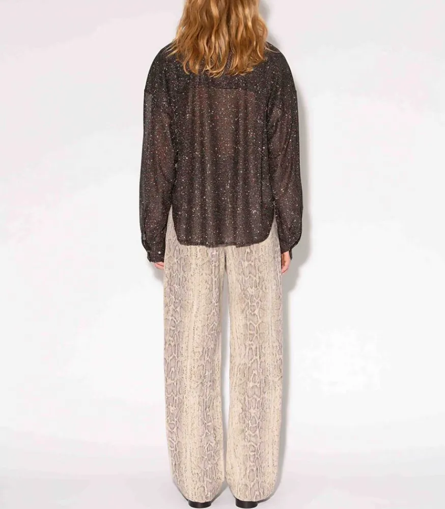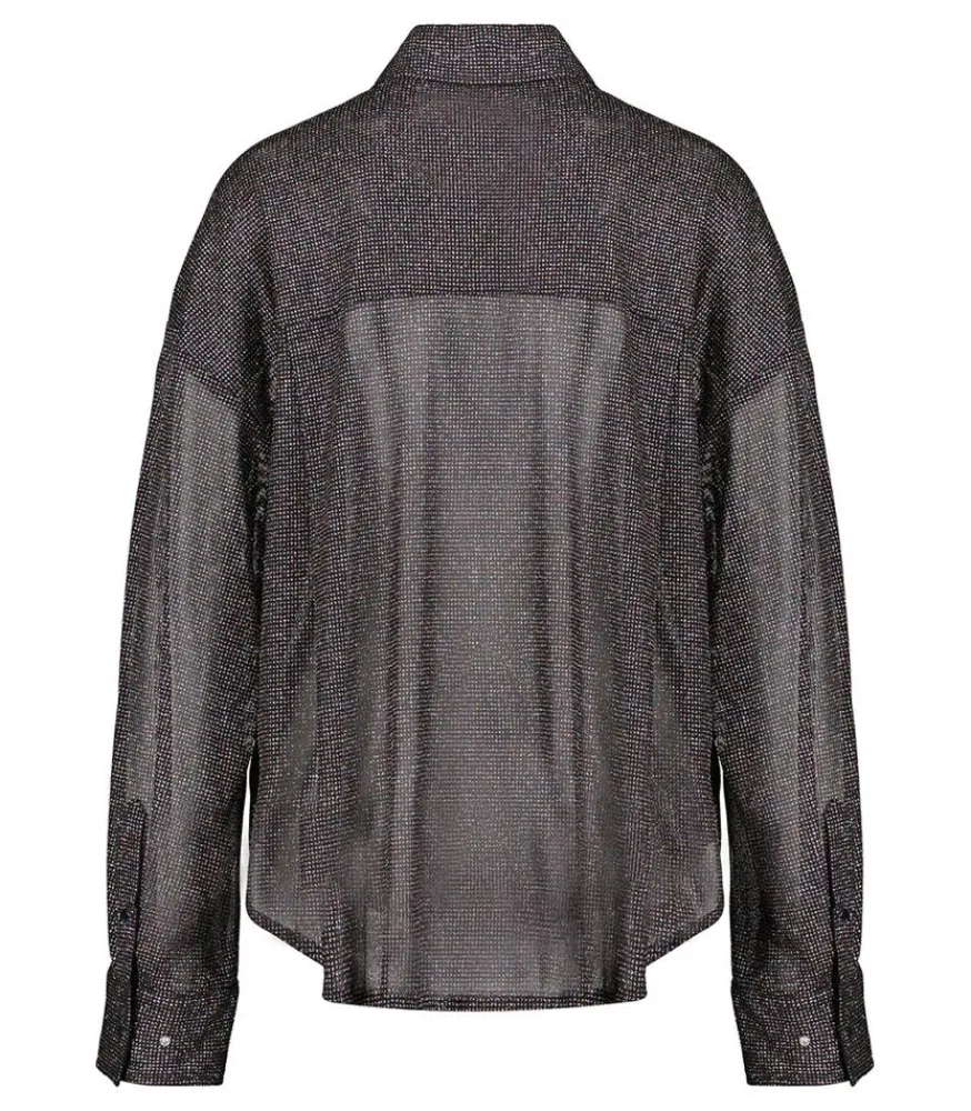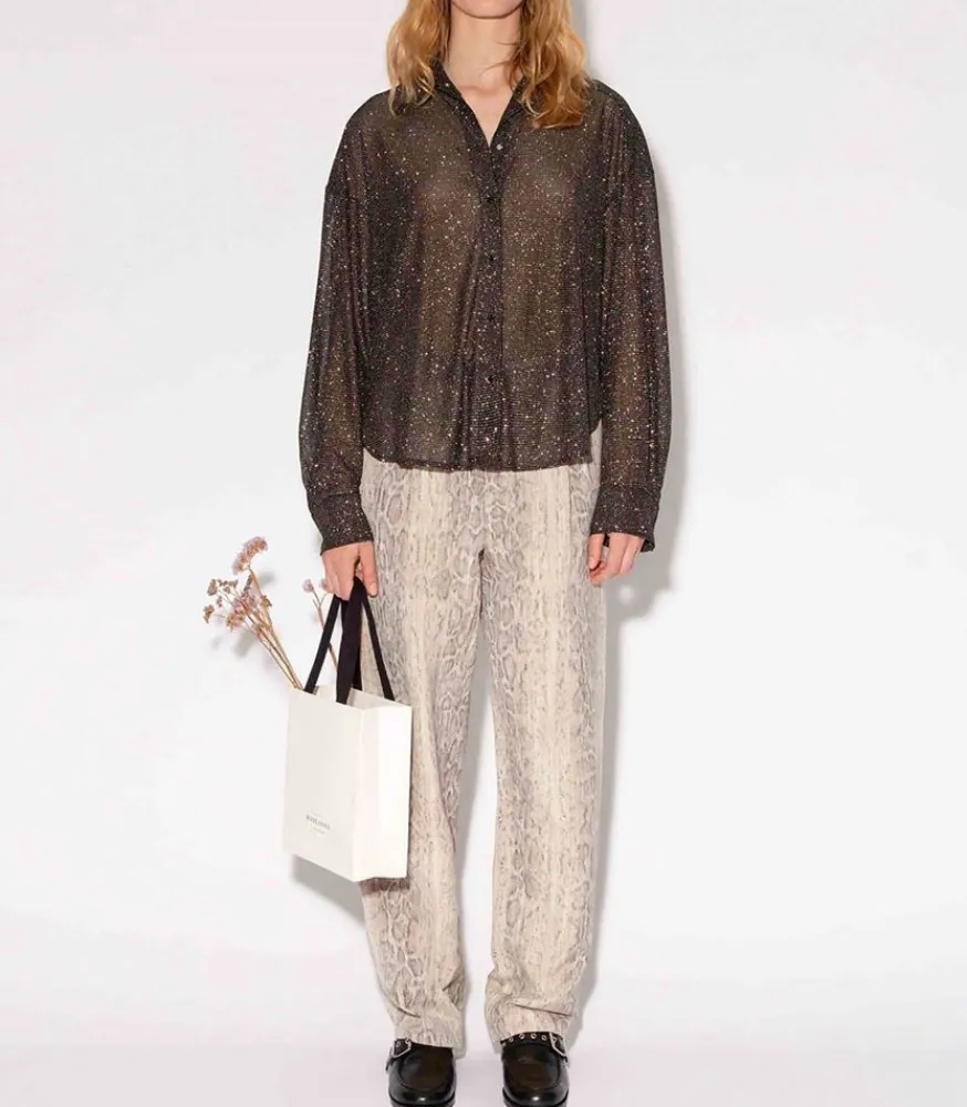 Chemise Disco Bijou Noir Signée Roseanna, Une Pièce Façon Boule À Facette. Elle Dévoile Une Coupe Ample Et Décontractée, Confectionnée Dans Un Tissus Voilé Et Pailletté.
