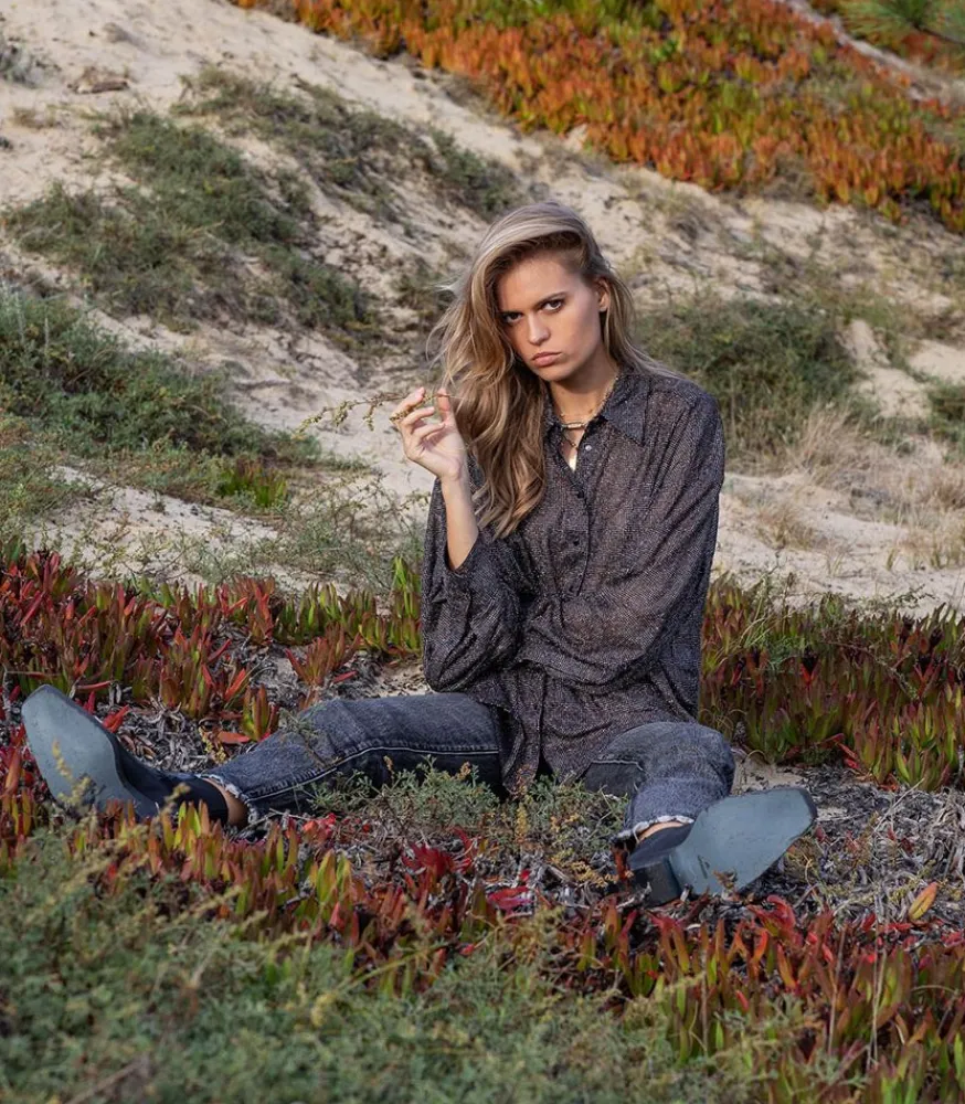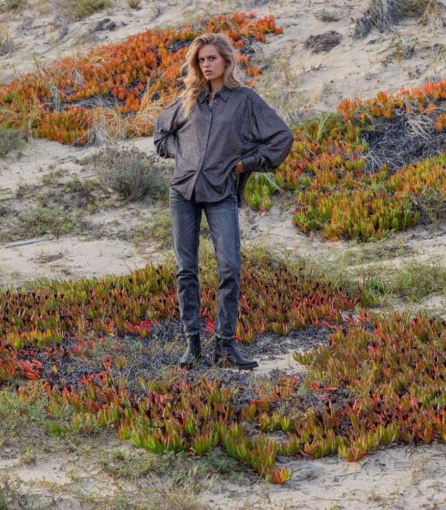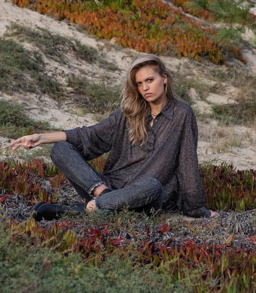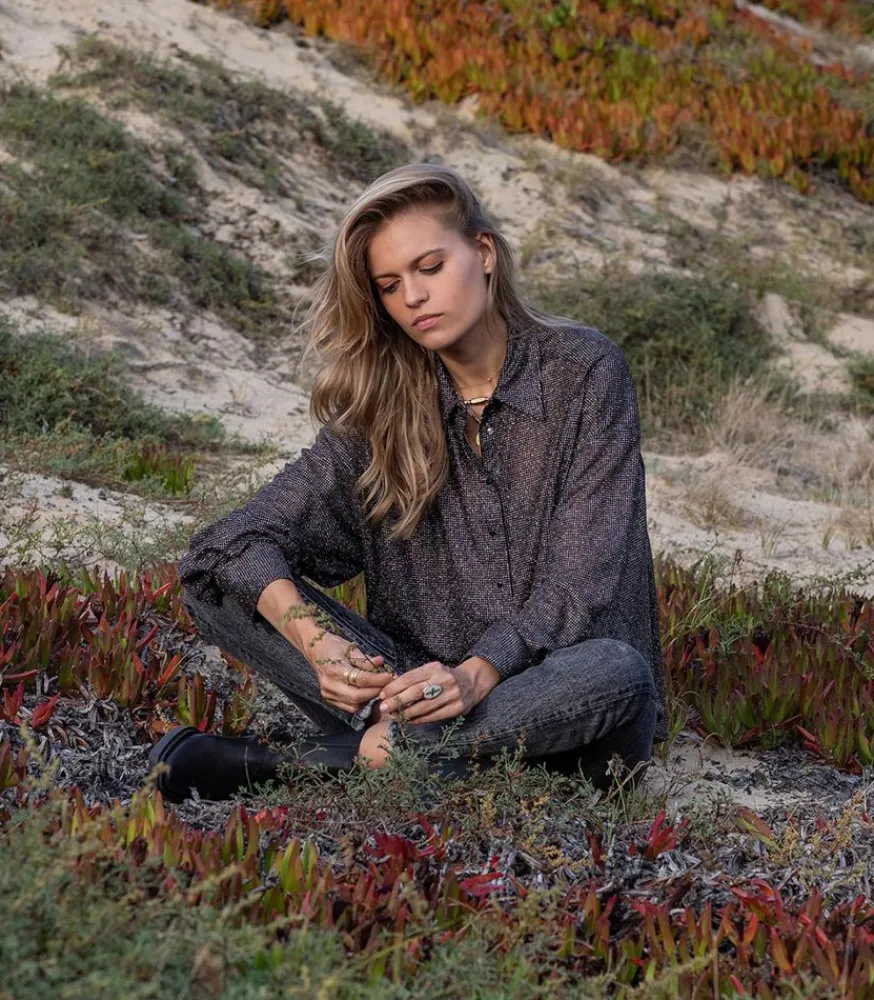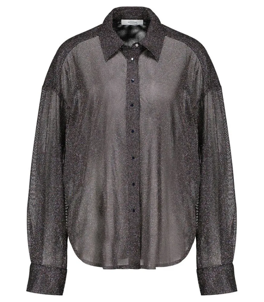 Chemise Disco Bijou Noir Signée Roseanna, Une Pièce Façon Boule À Facette. Elle Dévoile Une Coupe Ample Et Décontractée, Confectionnée Dans Un Tissus Voilé Et Pailletté.