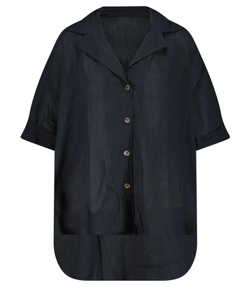 Légèreté Et Confort Sont Au Rendez-Vous Avec La Chemise Tortola Bleu Nuit De La Marque Maison Saint Julien Conçue À Bali En Mousseline De Coton Léger Et Respirant.