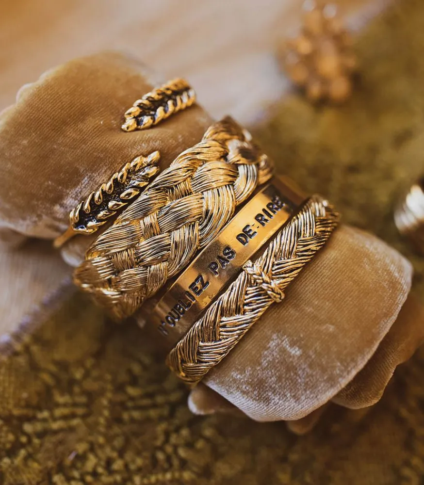 Jonc Icare Aurélie Bidermann De Motif Tresse Serrée Épaisse, Réalisé En Métal Entièrement Recouvert D’Or 750/1000.