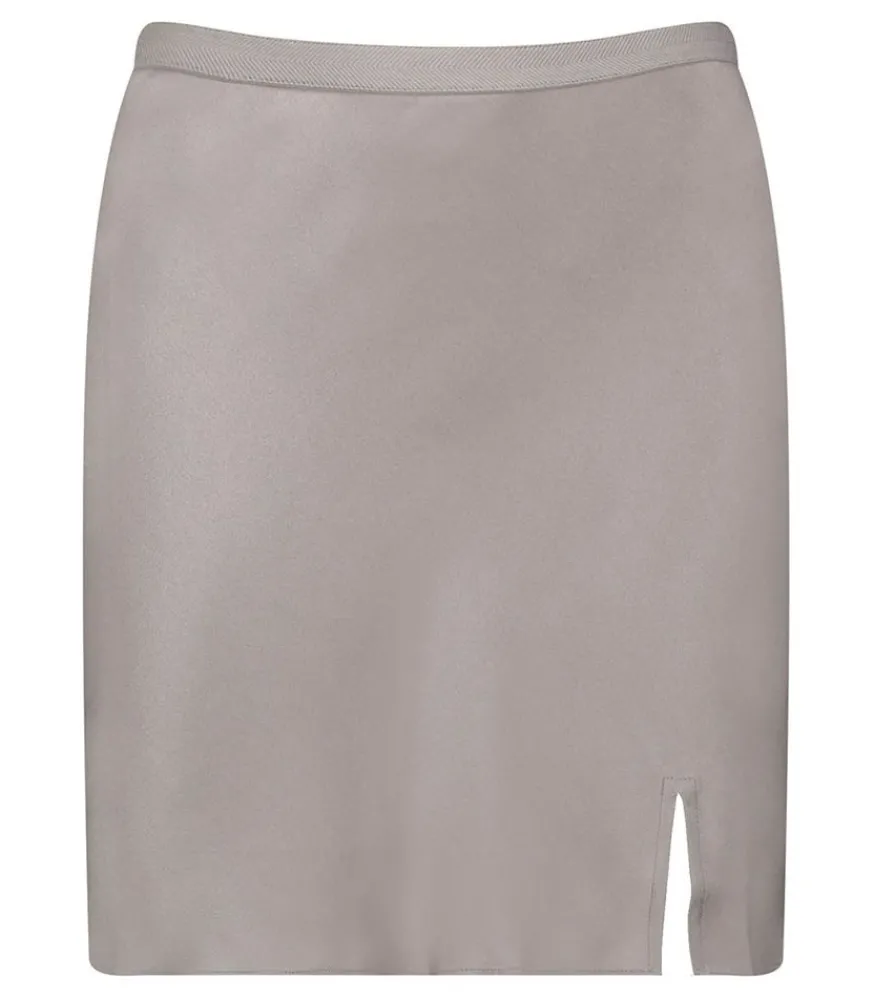 Jupe Chrisly Ash Violet De La Marque Anine Bing, Une Mini Jupe En Soie Féminine Et Moderne. Pratique, Elle S’Enfile Directement Grâce À Un Élastique Autour De La Taille. Une Légère Fente Sur Le Devant Vient Ajouter Une Touche Féminine Supplémentaire.