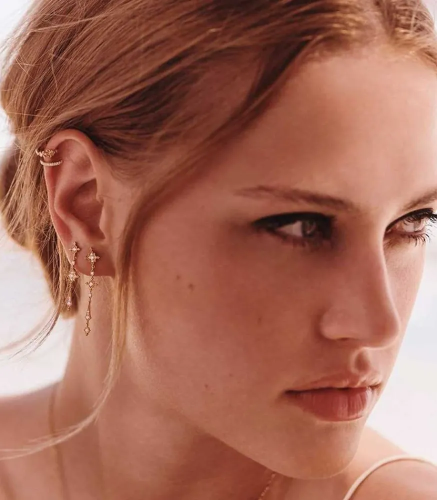 Mini Créole Double Glory Or Jaune Et Diamants Signée Stone Paris, Qui Se Compose De Deux Anneaux, Un Simple Entièrement Pavé Et Un Travaillé En Arabesques Ornées De Diamants. Sa Construction Est Pensée Pour Se Porter Sur L’Oreille Gauche, L’Attache Pour L’Oreille Étant Positionnée Au Niveau Du Motif En Arabesques.