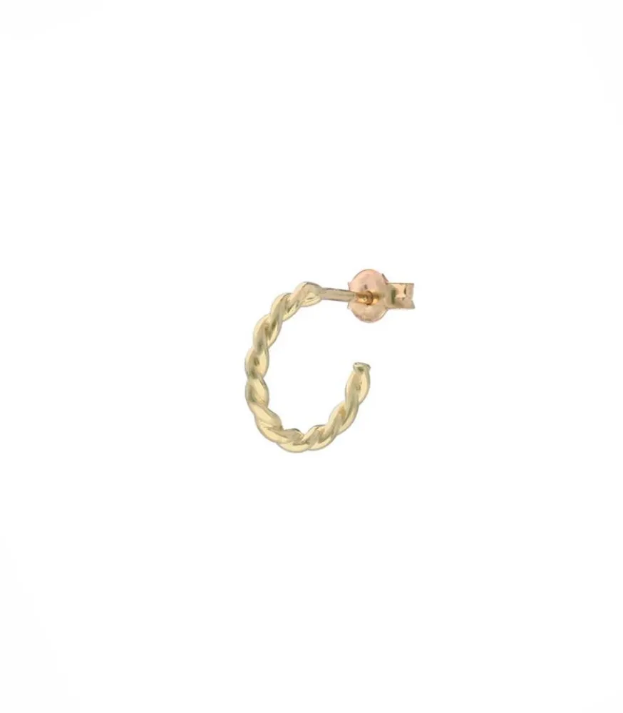Mini Créole Torsadée Small Feidt Paris, En Or Jaune 9 Carats. Une Petite Boucle D’Oreille Délicate Avec Son Look Torsadé Raffiné, Qui Se Porte Pour Agrémenter Une Composition De Boucles D’Oreilles.