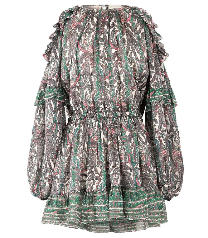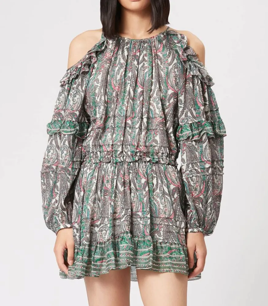 Robe En Coton Imprimé Gabinia Écru De La Marque Isabel Marant, Une Robe À L’Allure Bohème Qui Dévoile Les Épaules.