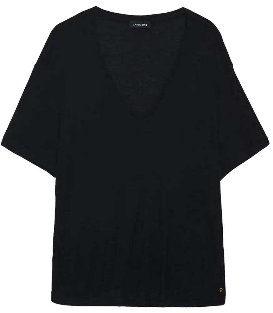 Un Essentiel Décontracté Confectionné À Partir D’Un Mélange Léger De Jersey Modal Et De Cachemire, Offrant Une Sensation Douce Au Toucher Et Un Drapé Naturel. Le Tee-Shirt Vale Présente Un Décolleté En V Profond, Des Manches Courtes Tombantes Et Une Encolure Plus Longue Pour Un Look Décontracté Et Sans Effort.