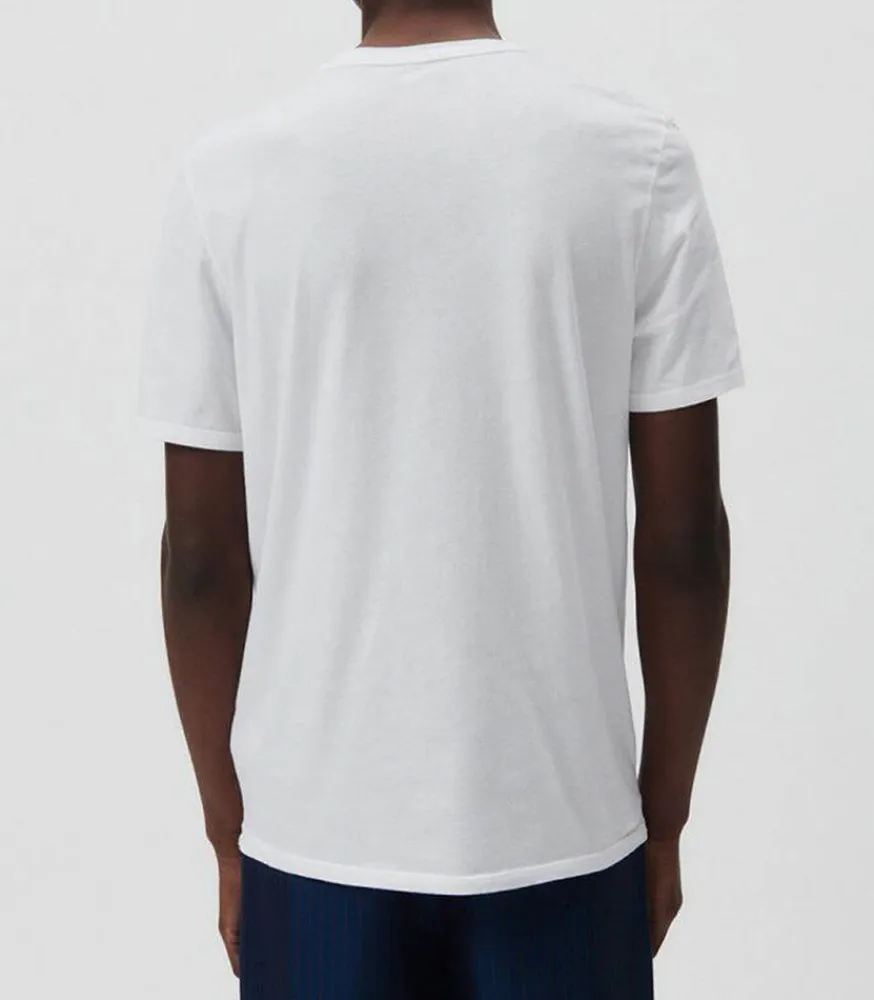 Tee-Shirt À Manches Courtes Homme Devon Blanc De La Marque American Vintage, À La Coupe Droite. Un Basic De La Garde-Robe Masculine.