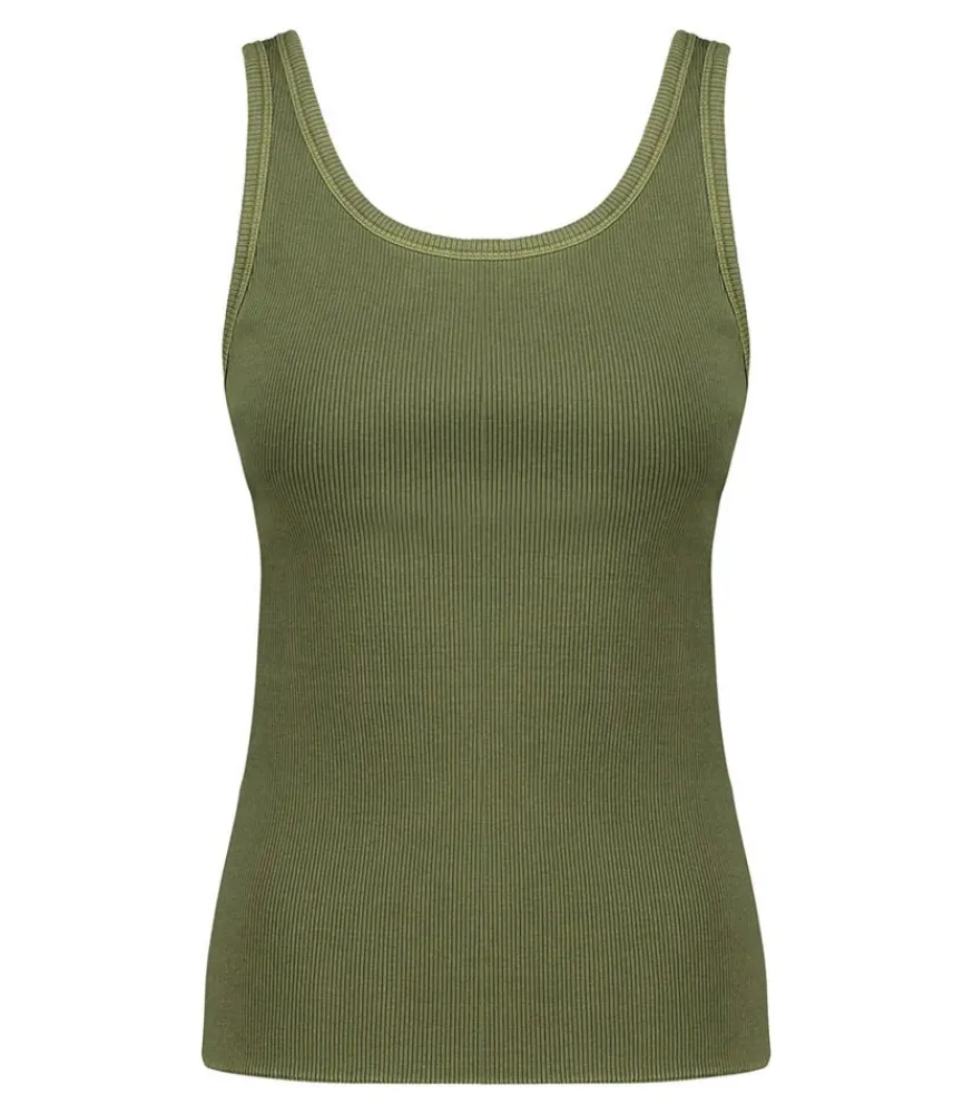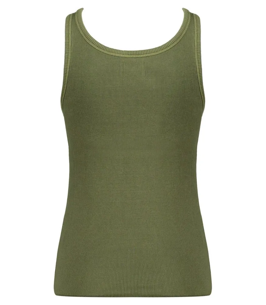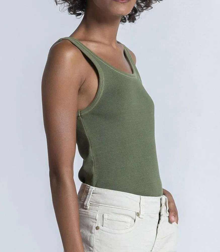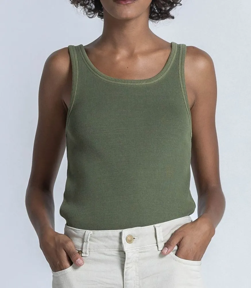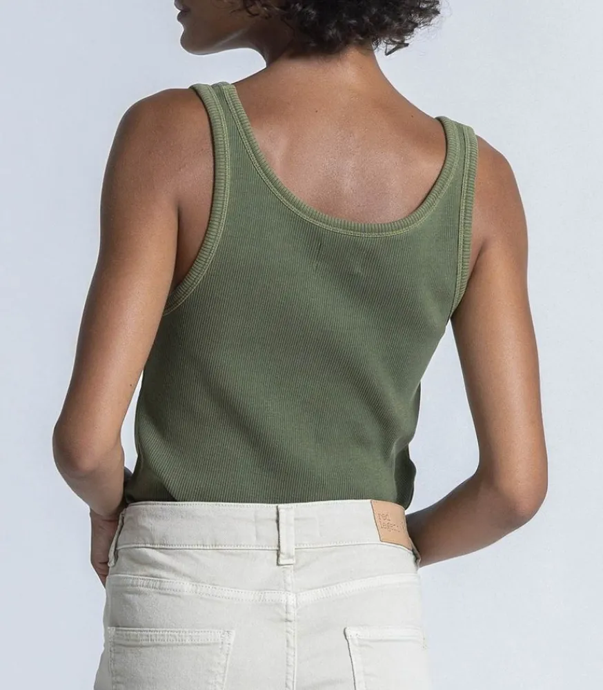 Top Tess Kaki De La Marque Red Legend, Un Débardeur En Coton Côtelé Et À La Coupe Droite. Allure Décontractée, À Porter Avec Un Jean Boyfriend.